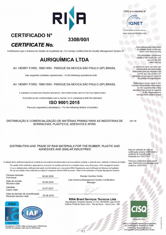 A Auriquímica Certificada sob a Norma ISO 9001:2015 em todas as nossas unidades, proporcionamos segurança quanto aos produtos e serviços fornecidos, solidificando assim, a qualidade no atendimento em busca da satisfação de nossos clientes.